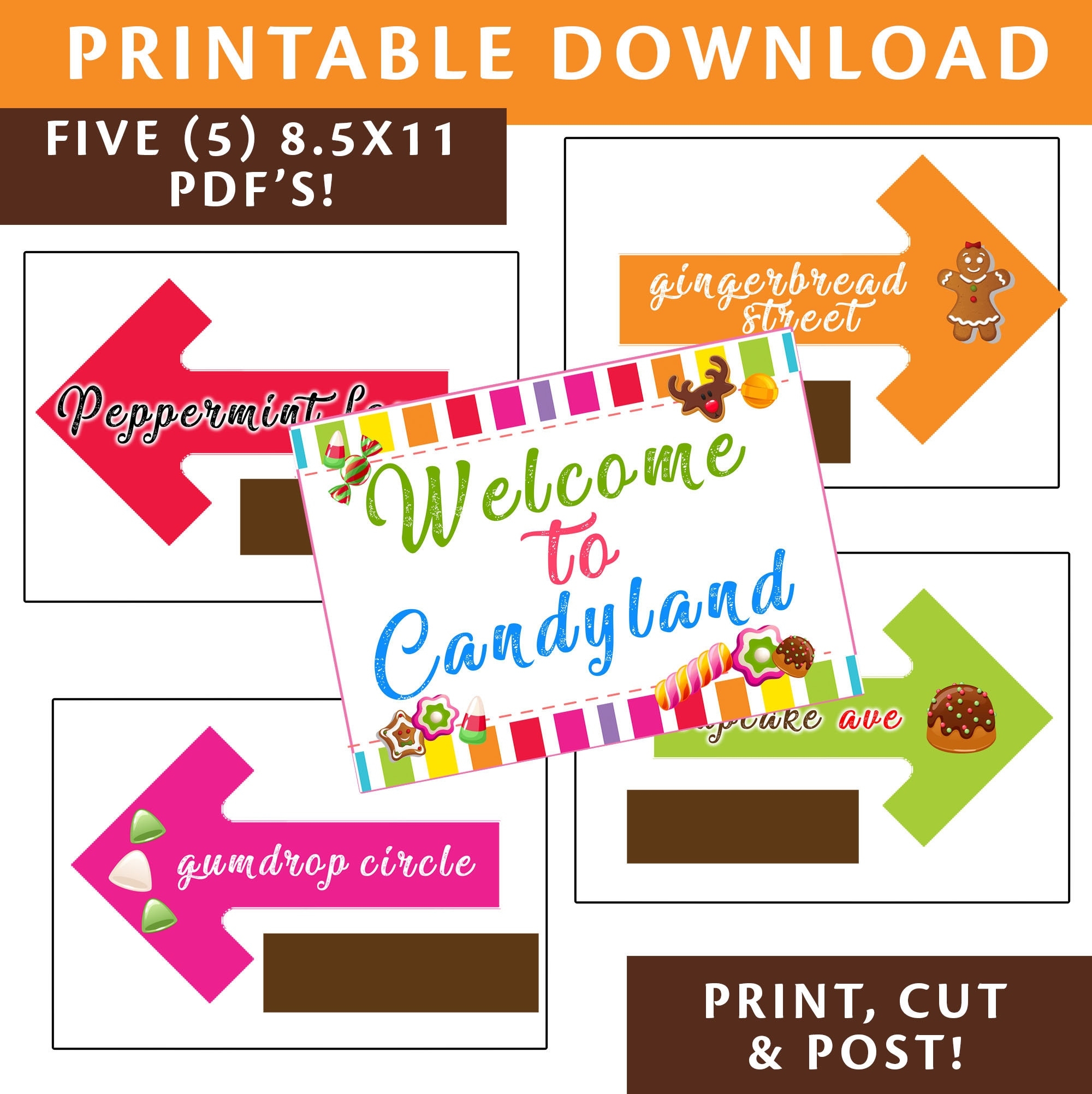 PRINTABLE Candyland Welcome Sign Plus 4 Directional Signs Candyland Theme Street Signs Candyland Instant Download Directional Signs Etsy Norway