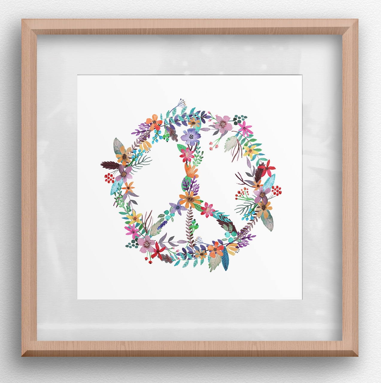 Floral Peace Sign Wreath 8 X 8 Art Print Minglewood Bake Shop