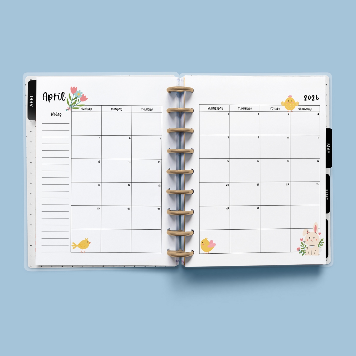 This printable planner includes monthly calendars, weekly spreads, goal-setting pages, and more. You can easily print out the pages you need and arrange them in a binder or use them as standalone sheets. The possibilities are endless with the Big Happy Planner April 2026 Printable!