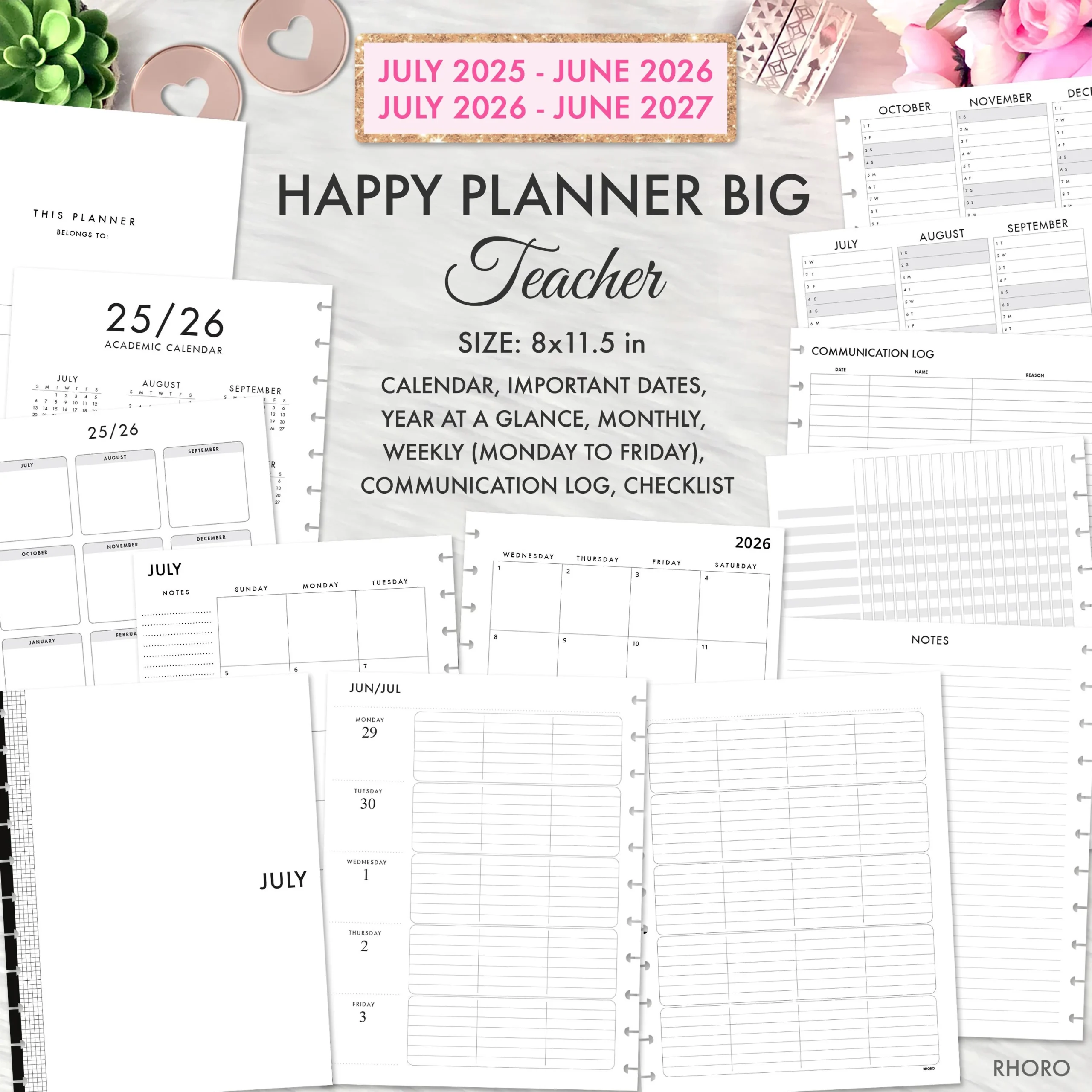Happy Planner Printable Teacher Planner 2025 2026 Digital Big Happy Planner Template Calendar Happy Planner Big Teacher Printable PDF Etsy