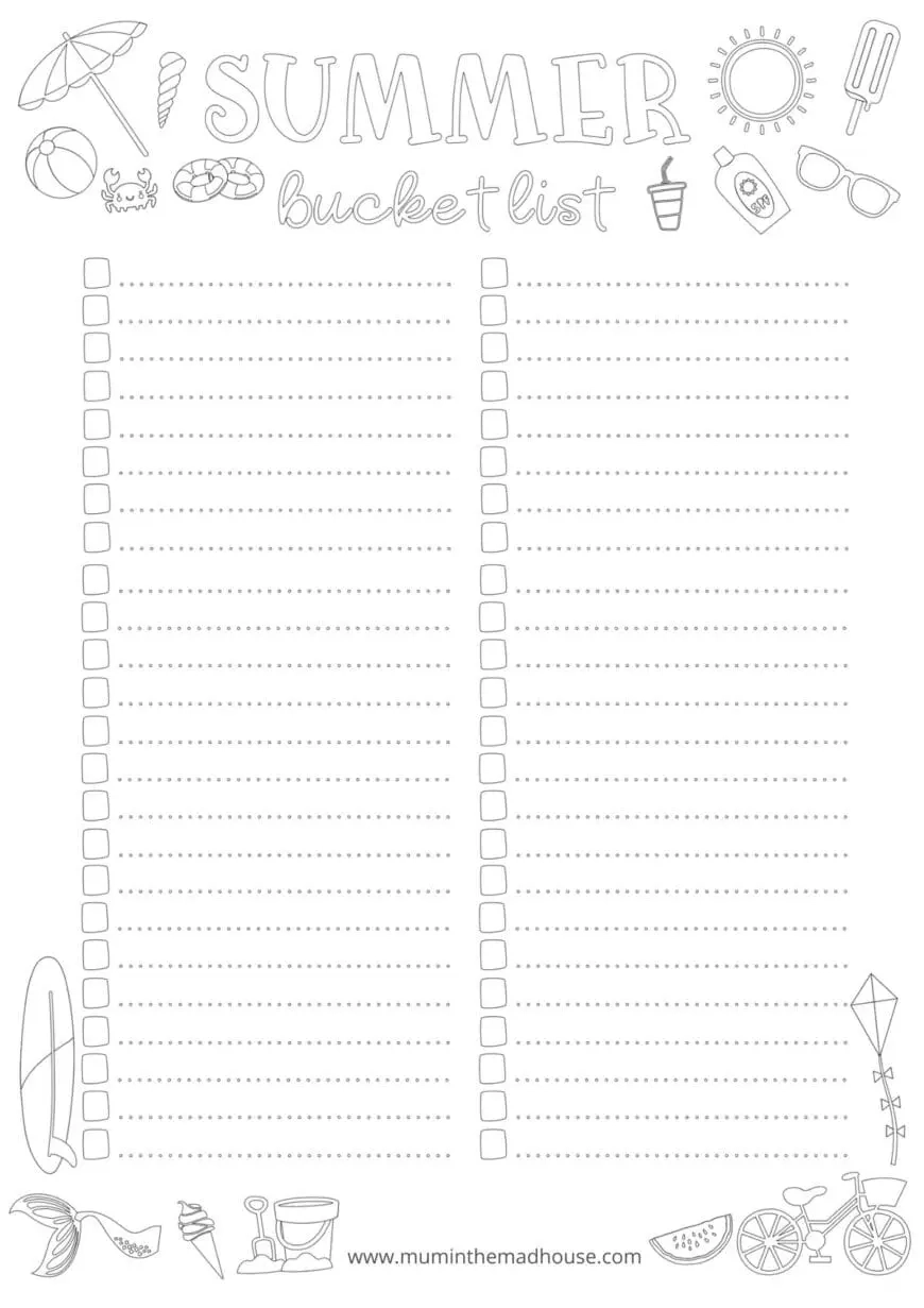 Summer Bucket List Printables