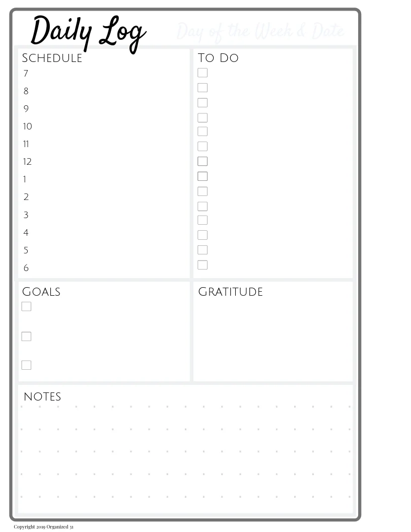 Bullet Journal Printable Daily Planner