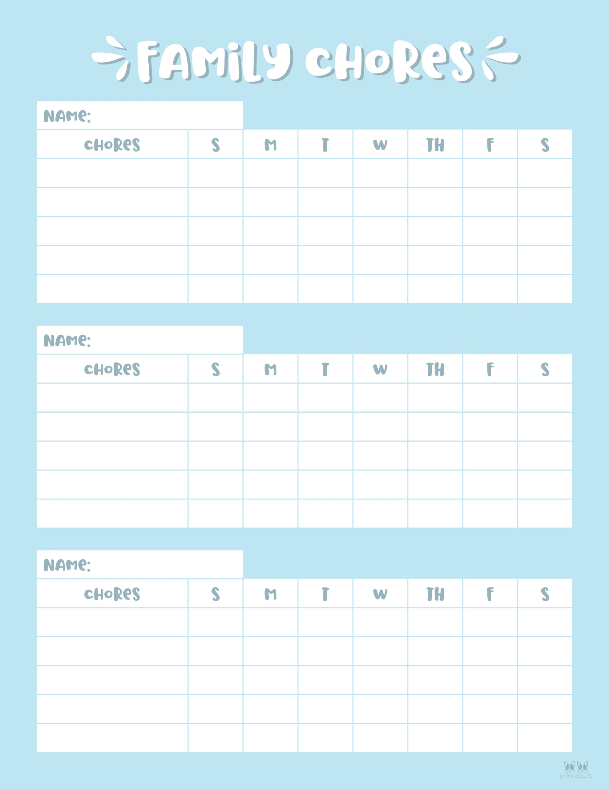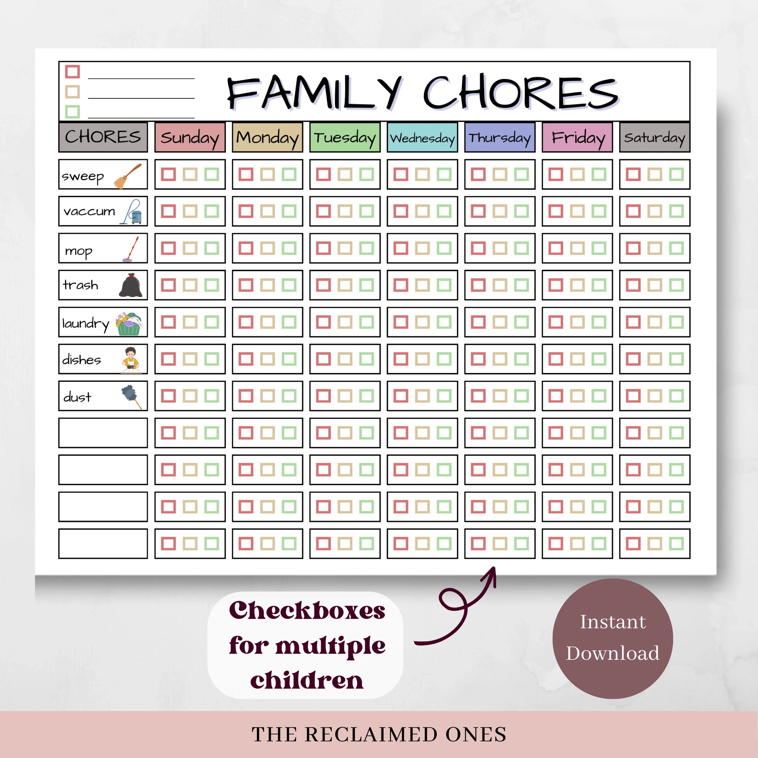 Printable Kids Chore Chart For Multiple Children Weekly Chore Charts Weekly Responsibility Checklists For 1 2 3 4 5 6 Kids Download Etsy