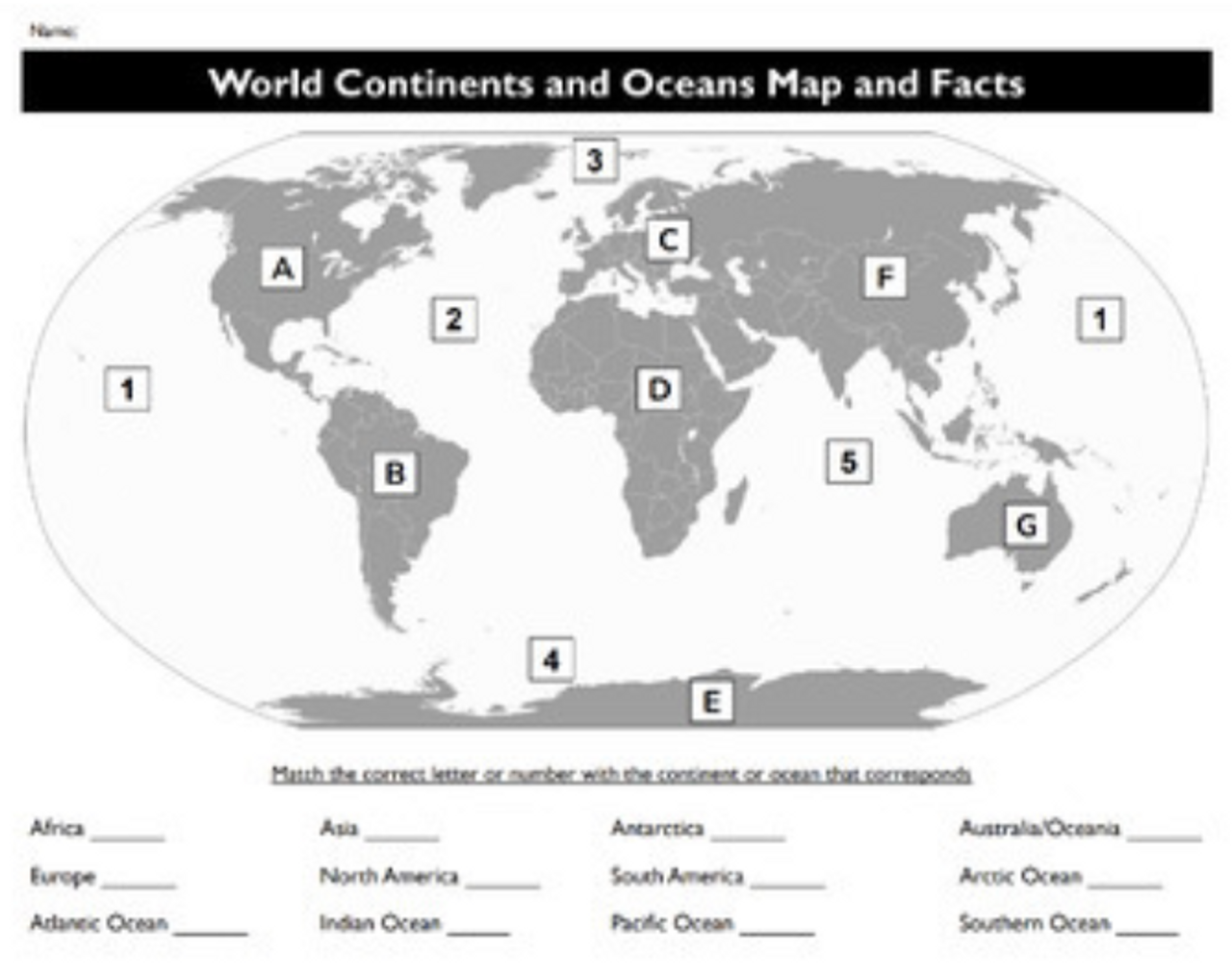 Continents And Oceans Study Guide Printable