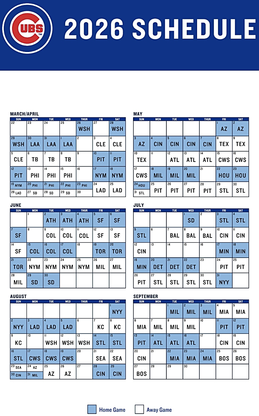 Chicago Cubs On X Cubbies 2026 Schedule Just Dropped View The Full Schedule At Https t co Qw9V14jXDN Https t co W8wRxtW0wR X