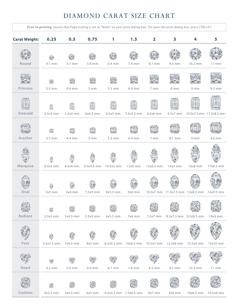 Free Printable Diamond Size Charts Actual Size On Hand Ear Finger