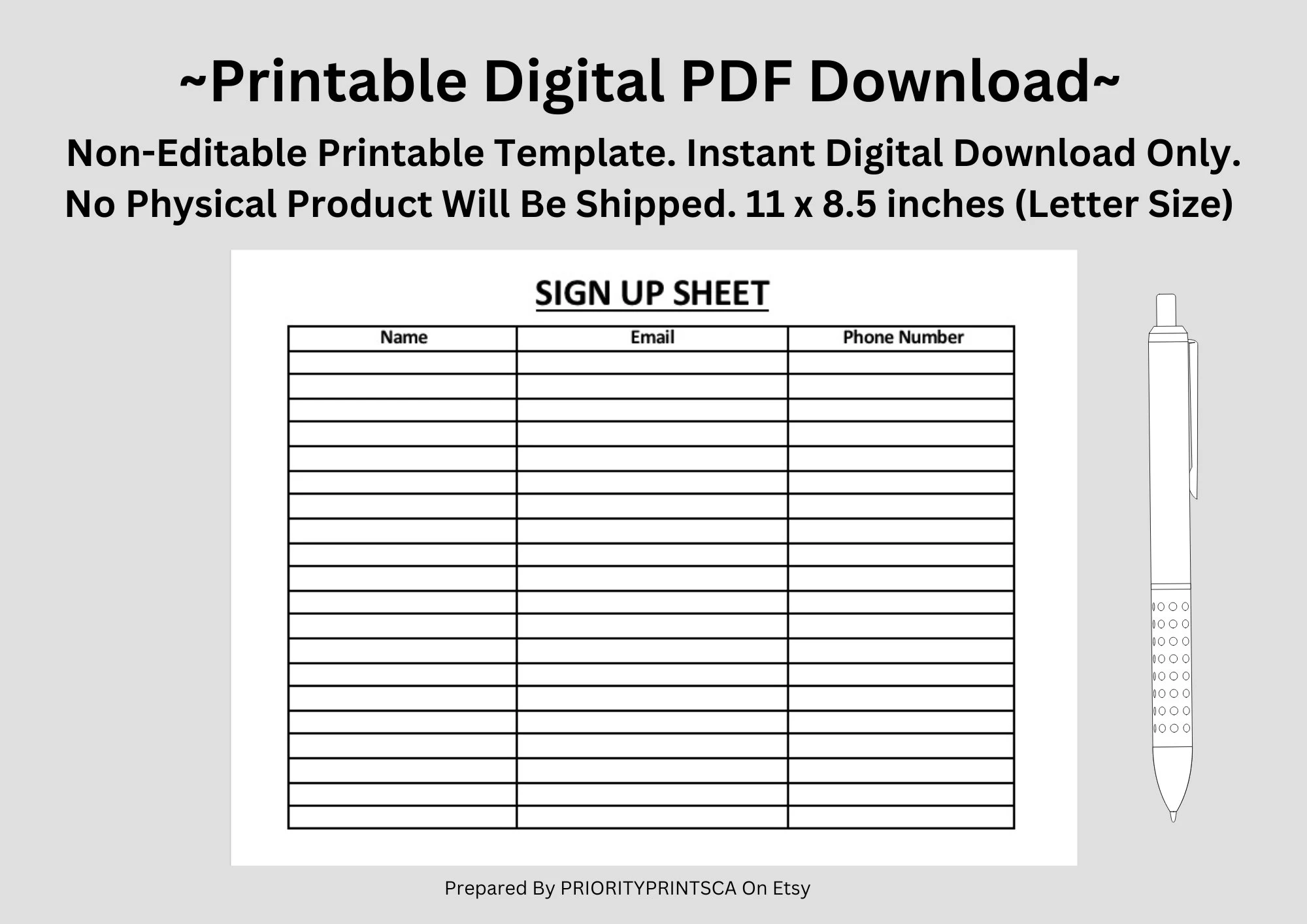 Etsy Printable Sign Up Sheet: A Convenient Solution
