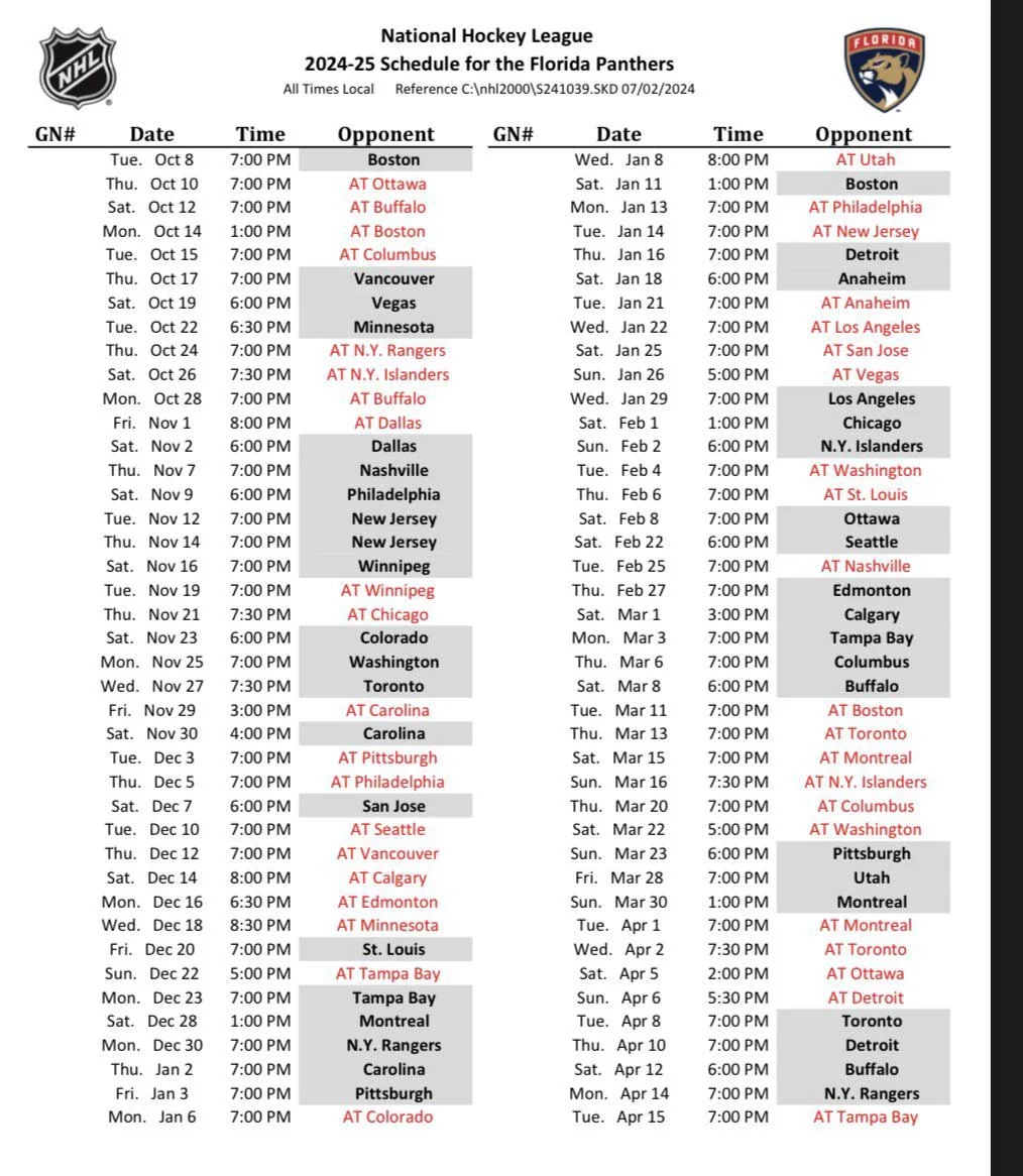 2024 25 Schedule R FloridaPanthers