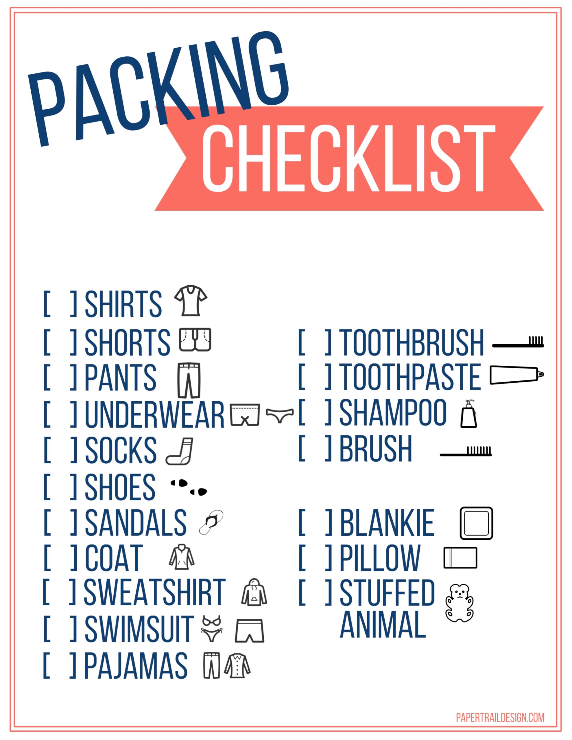 Free Printable Vacation Packing List Template For Kids Paper Trail Design