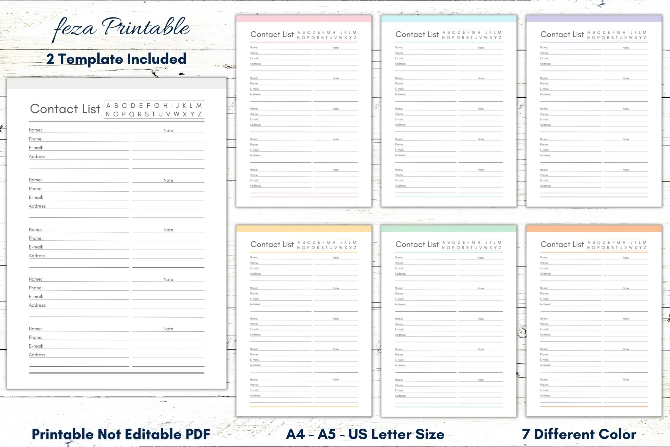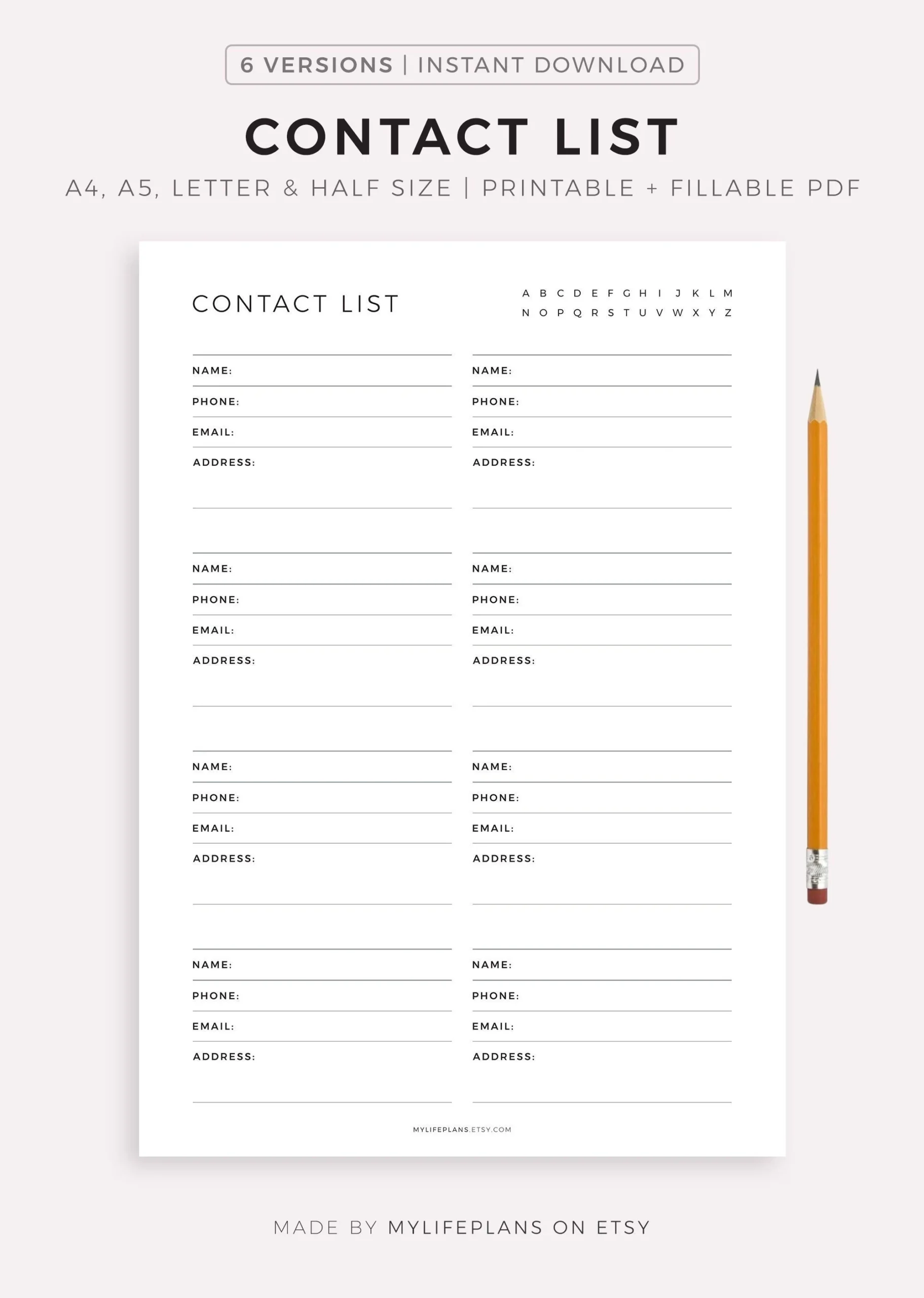 Printable Contacts List Contact Organizer Address Book Contact Information Planner Inserts A4 a5 letter half Size Instant Download PDF Etsy