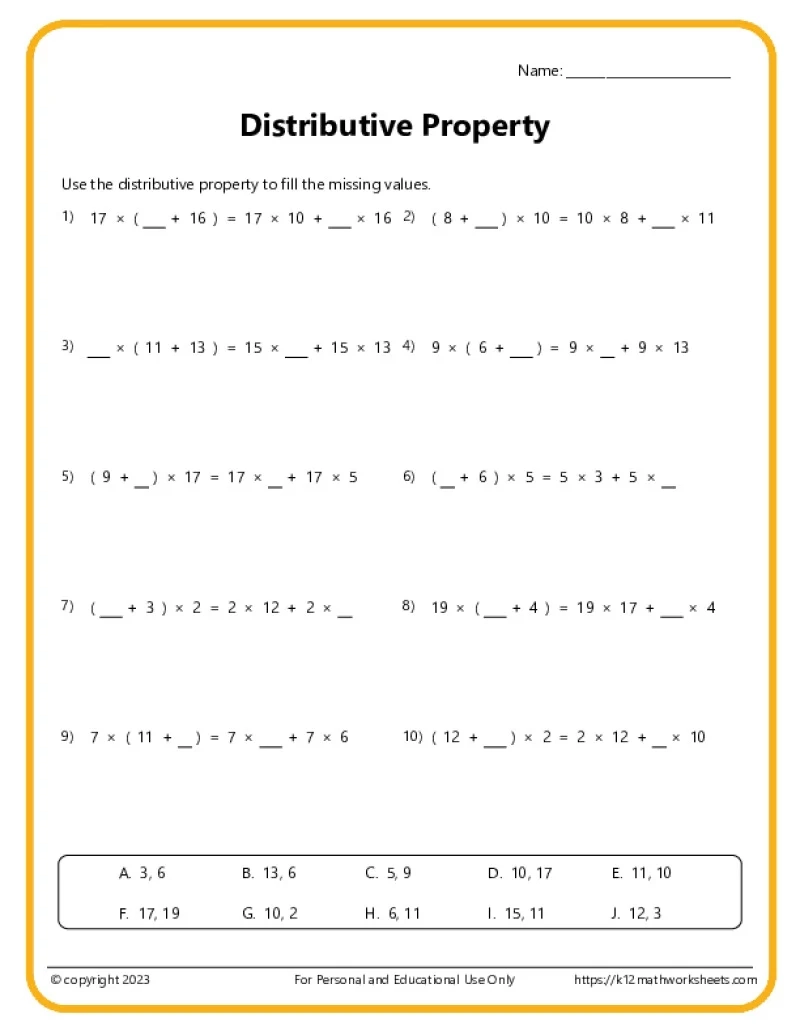 Whether you’re a parent looking to help your child with homework or a student wanting to improve your math skills, these practice sheets are a great resource. They provide a fun and interactive way to practice distributive property problems at your own pace.