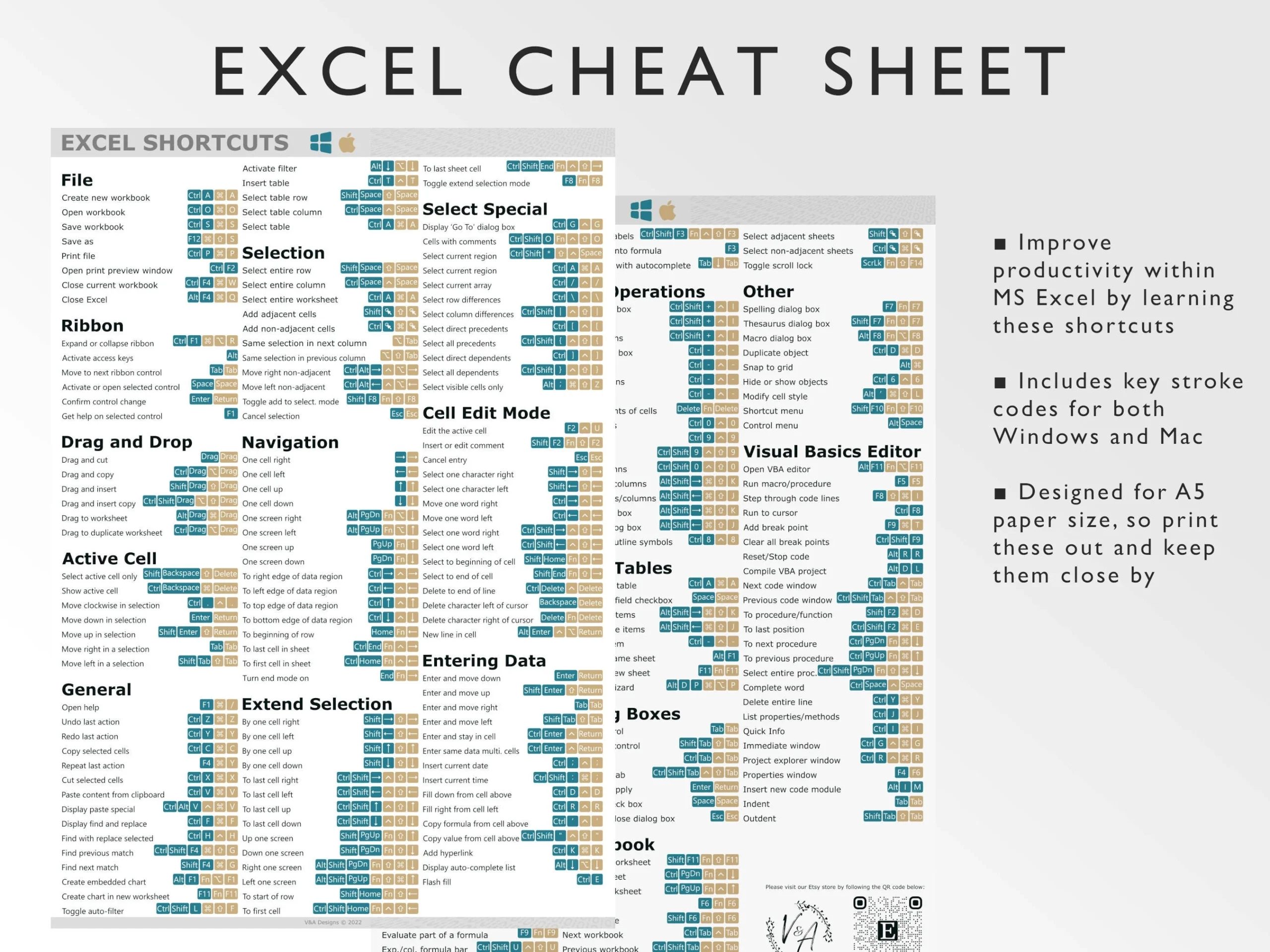 These cheat sheets are designed to help you navigate Excel more efficiently and save time on your tasks. Whether you’re a beginner or an advanced user, these shortcuts will come in handy and boost your productivity.
