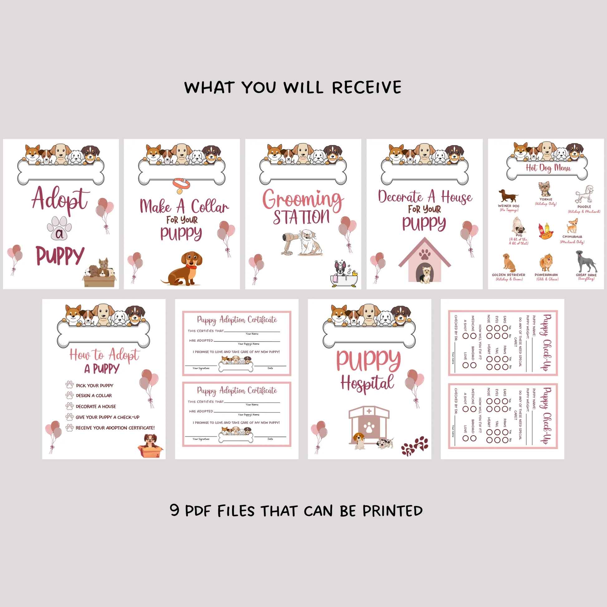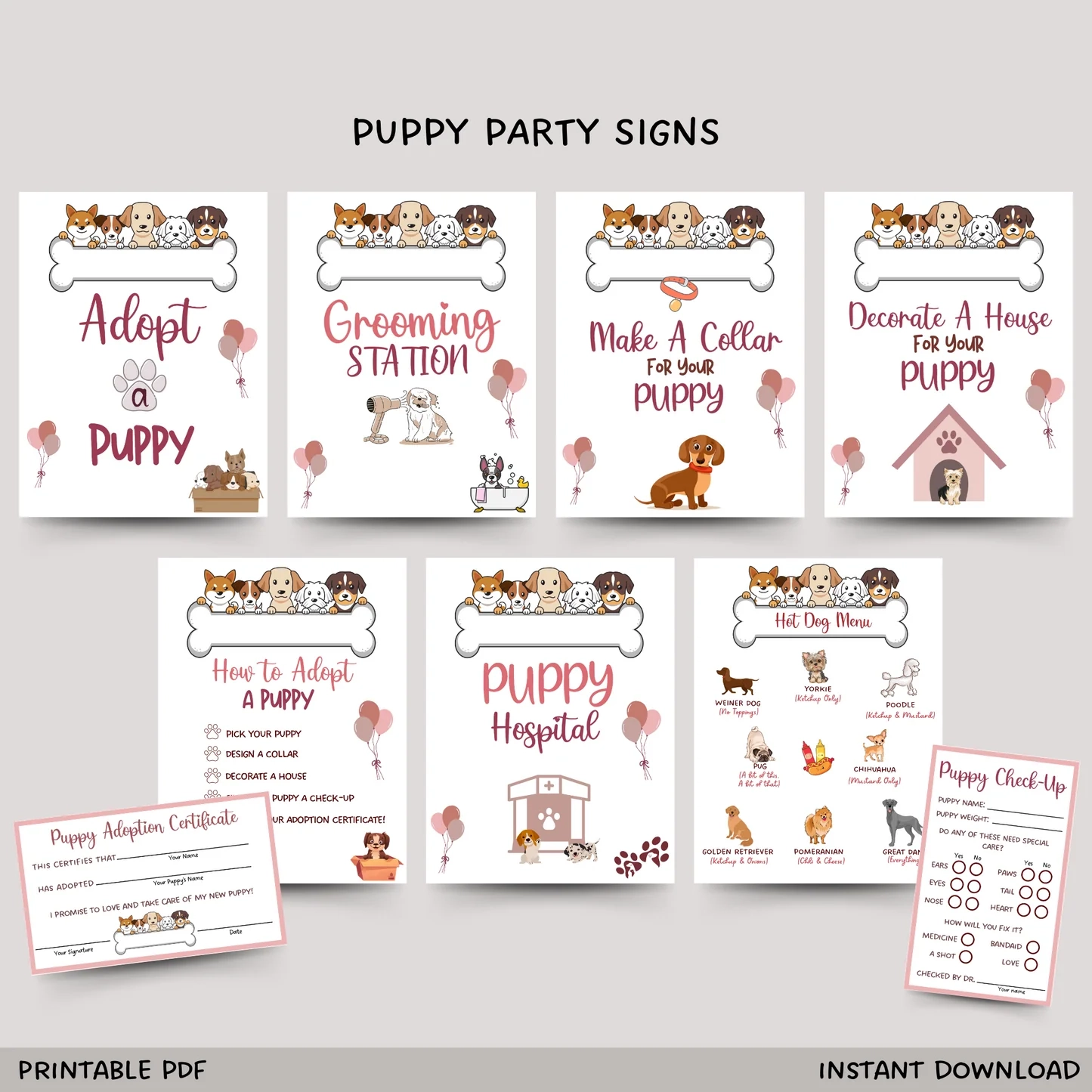 Puppy Party Signs Printable Adopt A Puppy Dog Lover Birthday Games Scribbled LLC