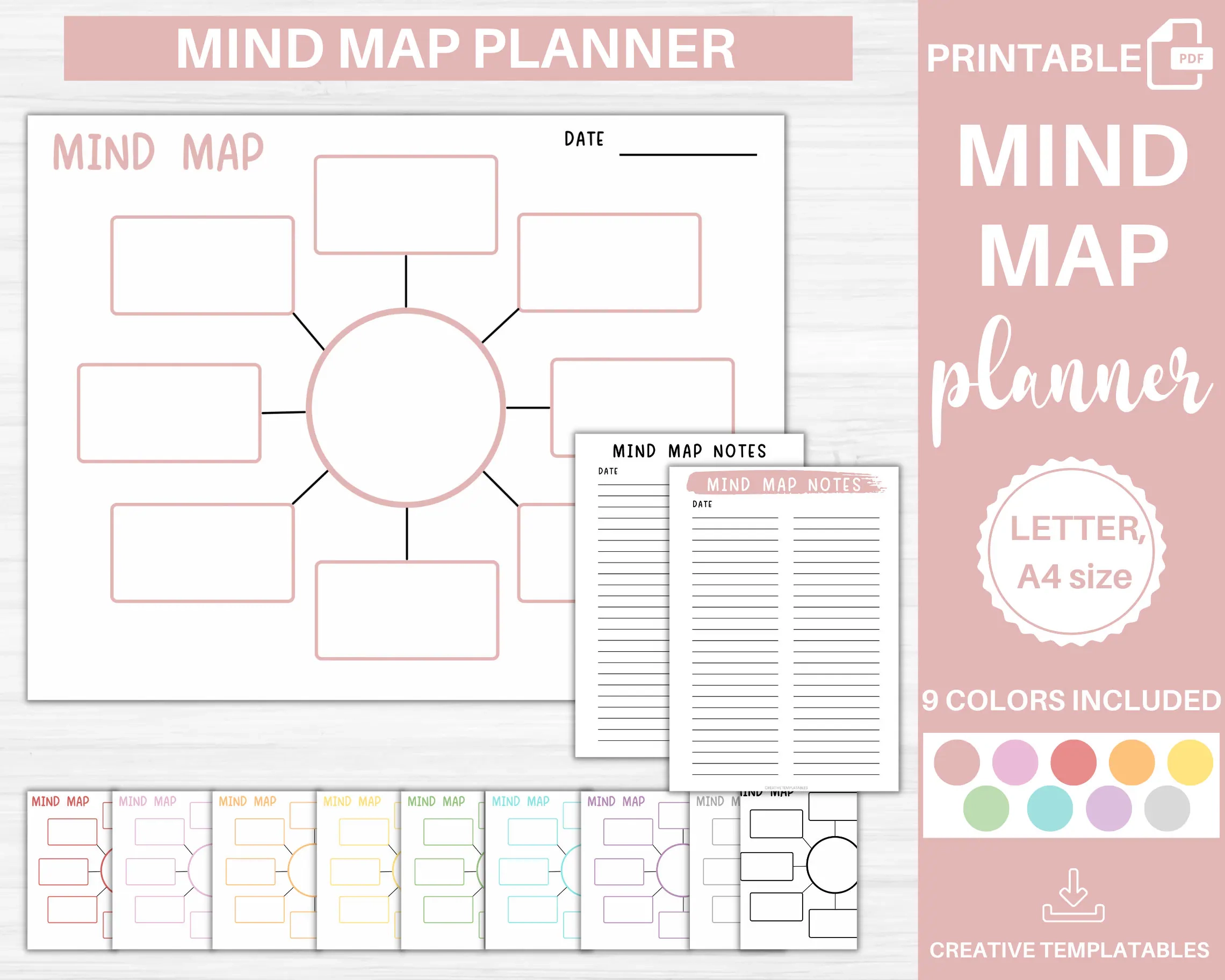Mind Map Planner Printable Mind Map Template Study Guide Idea Map Visual Action Plan Brainstorm Map Visual Map Idea Board 2 Etsy