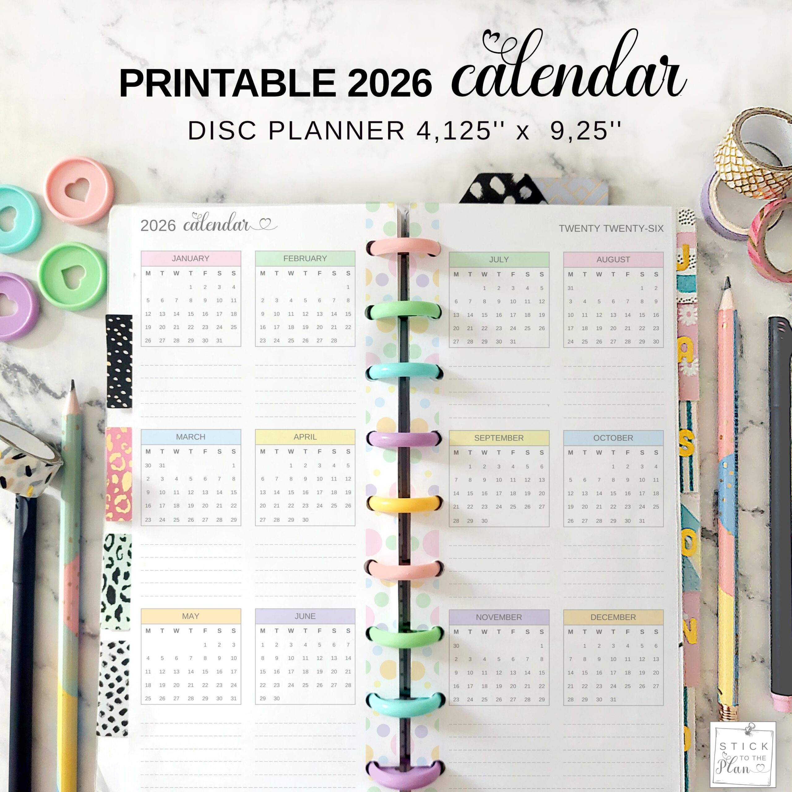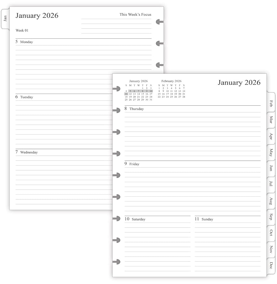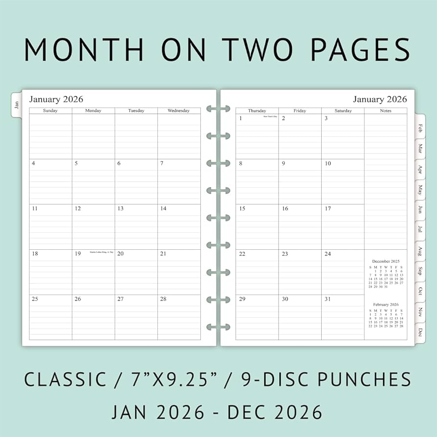 Amazon 2026 Weekly Planner Refills For Happy Planner Classic Notebook 9 Discs Punched Two Pages Per Week Jan 2026 To Dec 2026 7 X 9 1 4 Office Products