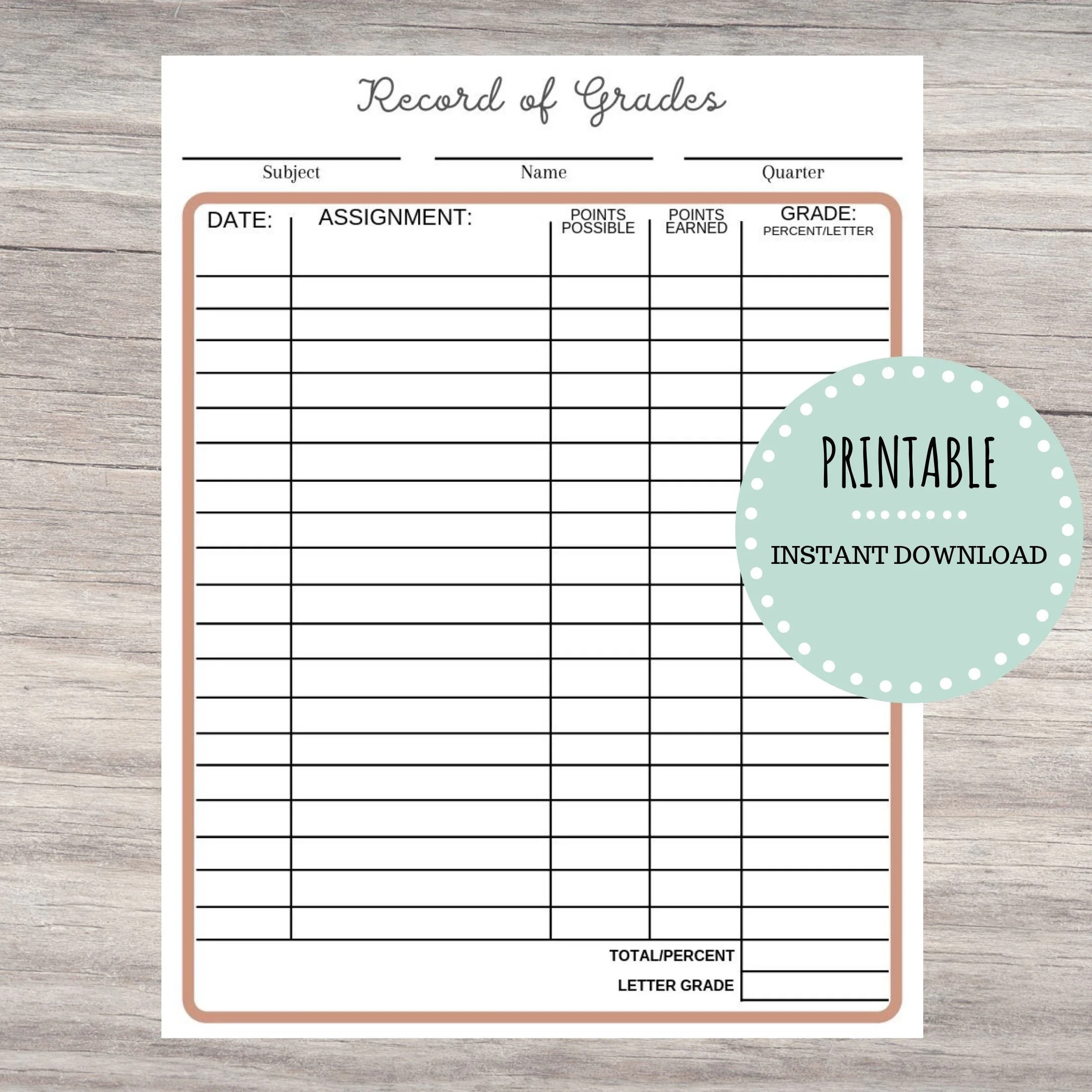 Printable Record Of Grades Teacher Printable Grading Book Printable Homeschool Record Of Grades Form Grading Printable INSTANT DOWNLOAD Etsy