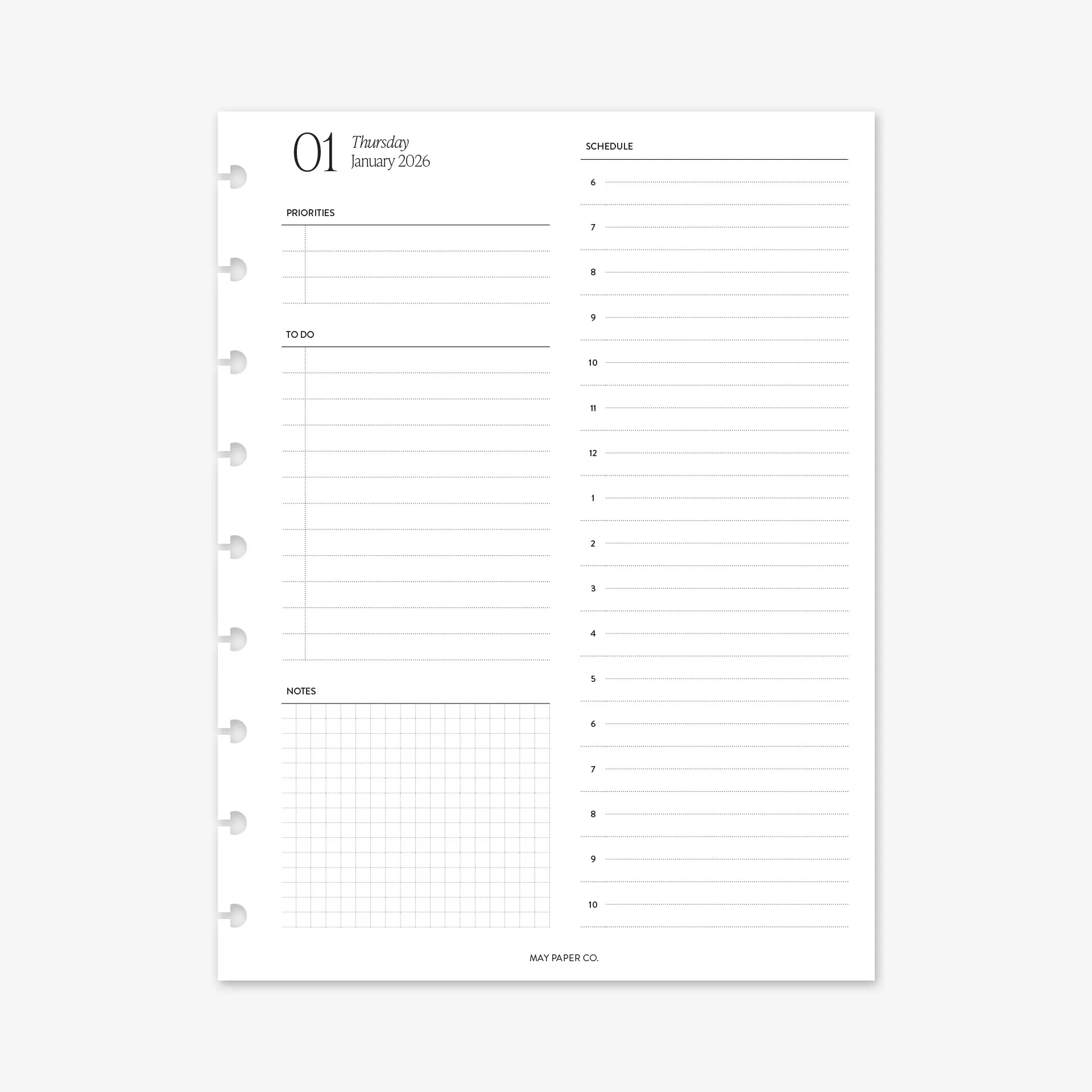 PRINTABLE 2026 DO1P Daily With Half Hourly Schedule Inserts MAY PAPER CO