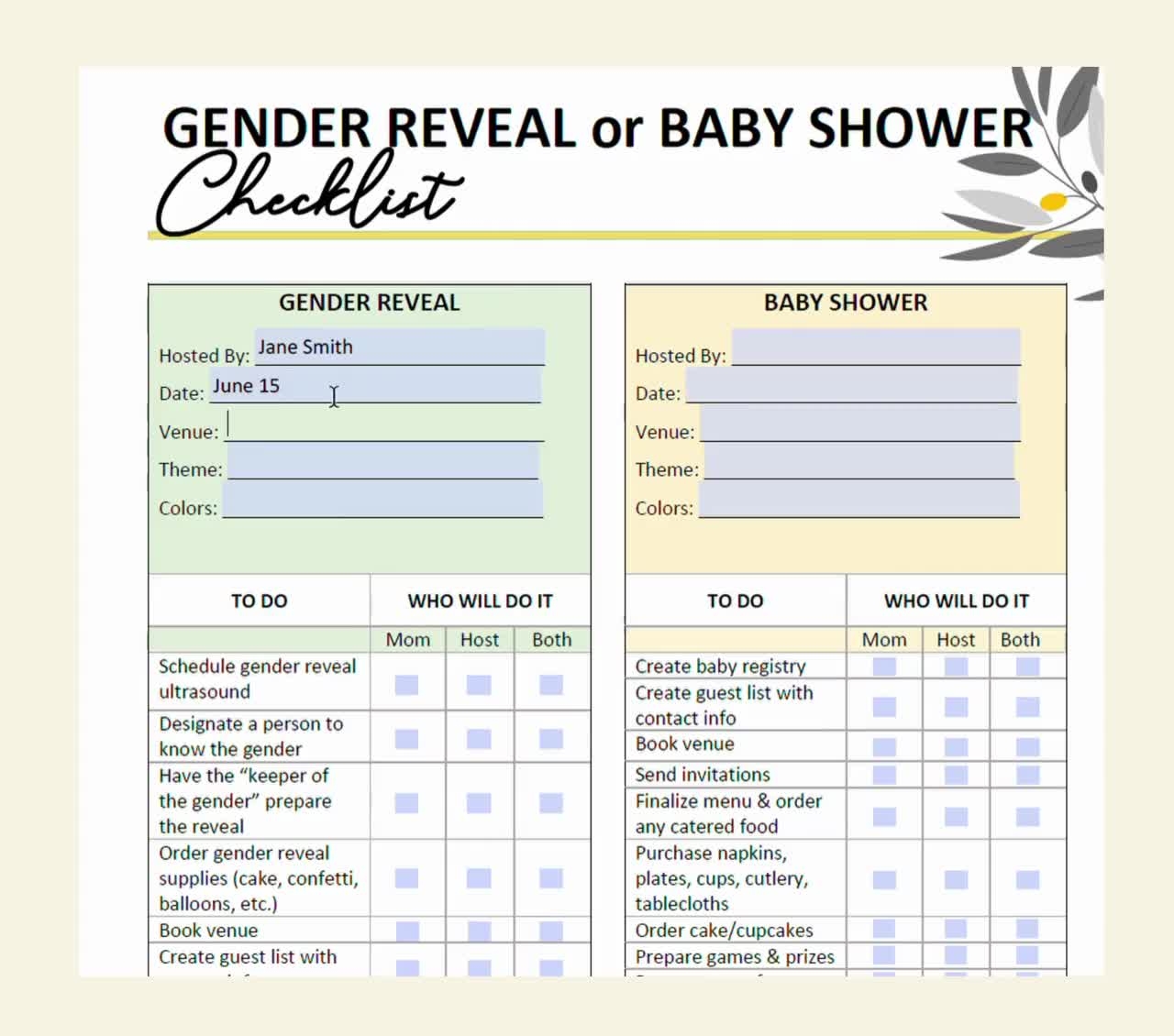Printable Editable Gender Reveal Planning Template Checklist Etsy