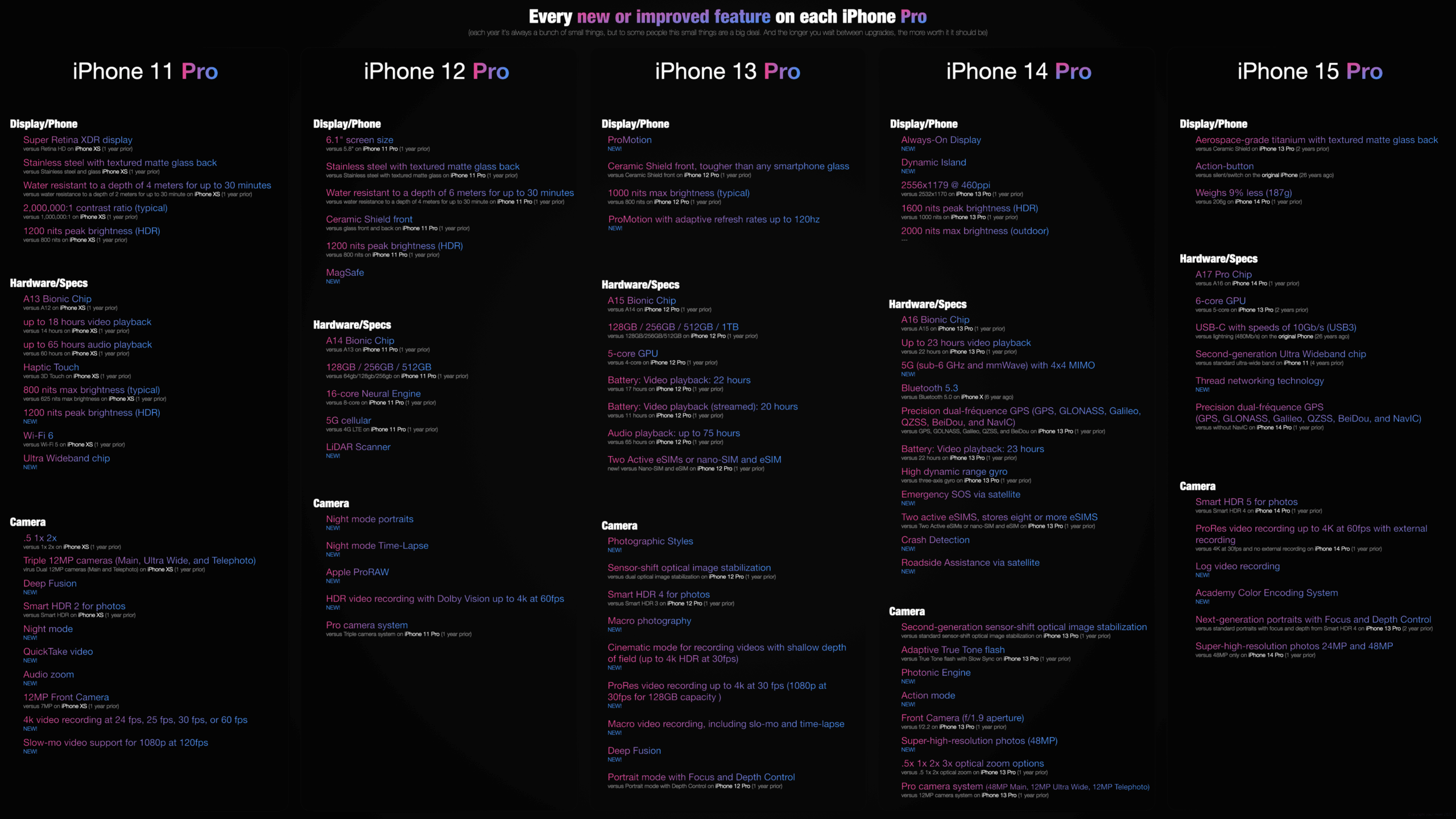 I Put Together A List Of Every New updated Feature Each IPhone PRO Model Gets Each Year from IPhone 11 To IPhone 15 R iphone