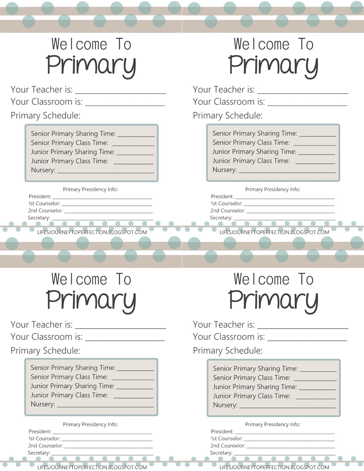 Lds Primary Welcome Sheet Printable