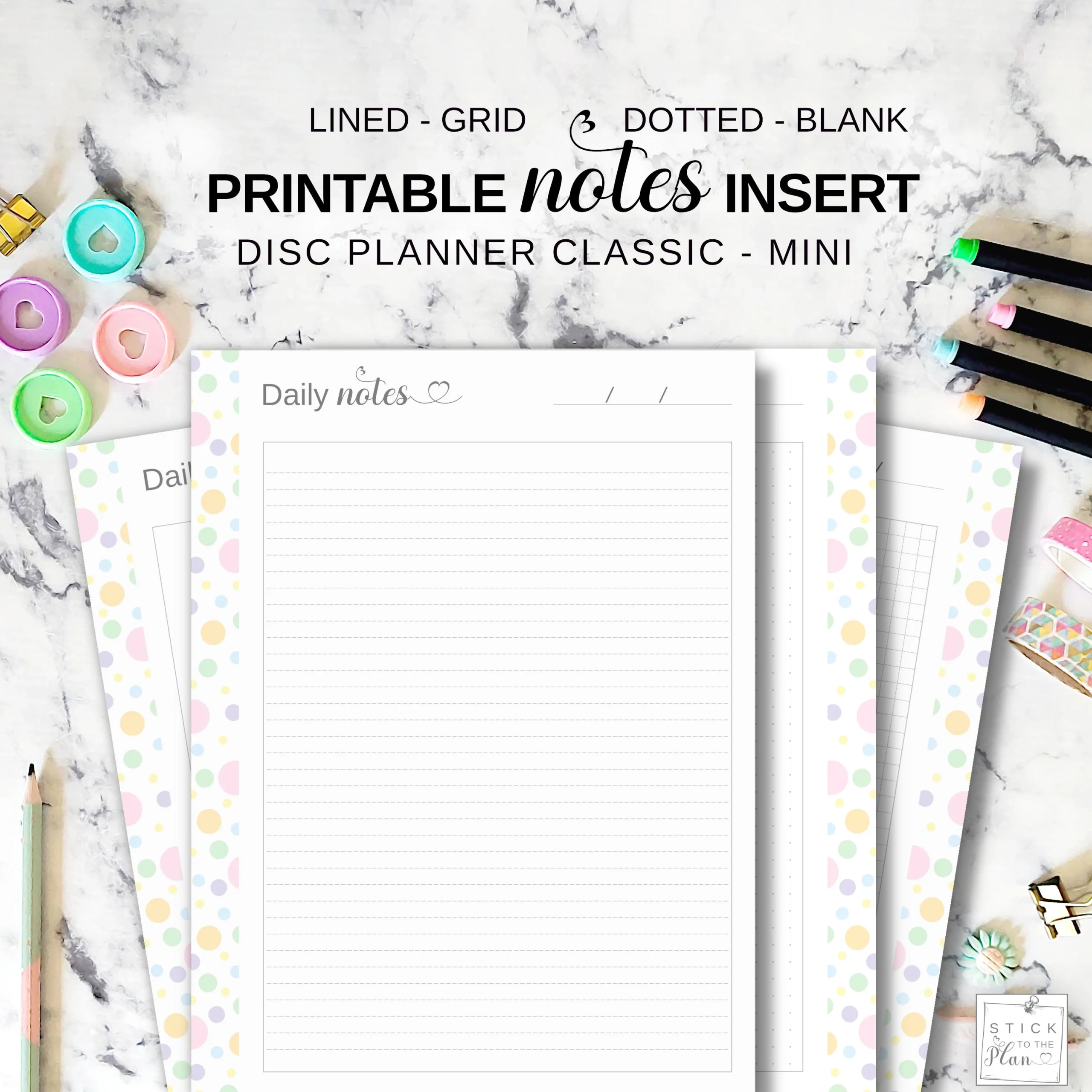 Notes Insert Classic Size Disc Planner Printable Lined Note Pages Mini Grid Paper Discbound Dot Paper Refill Blank Note Taking Sheets Etsy