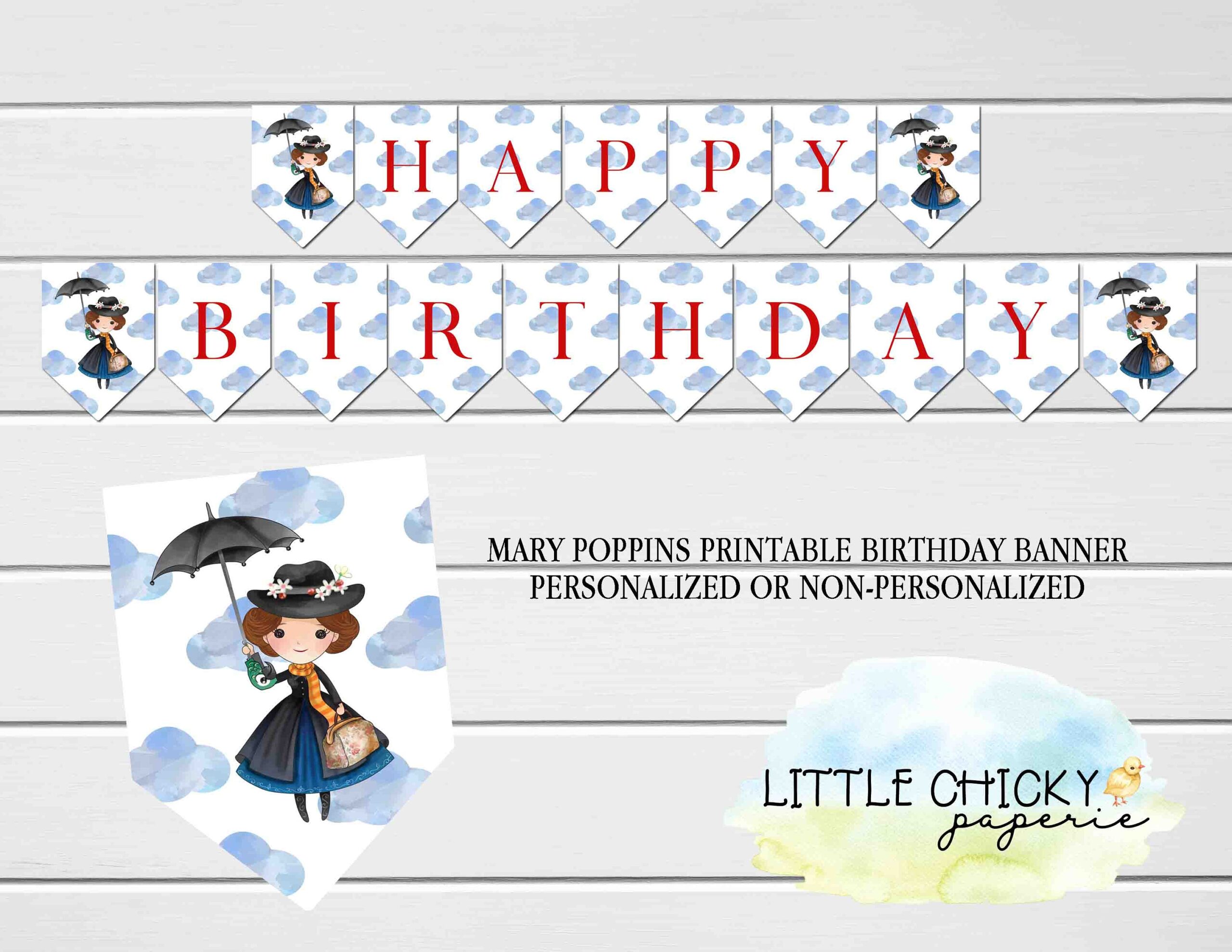 Mary Poppins Birthday Banner Happy Birthday Banner Printable Banner Instant Download Birthday Banner Etsy