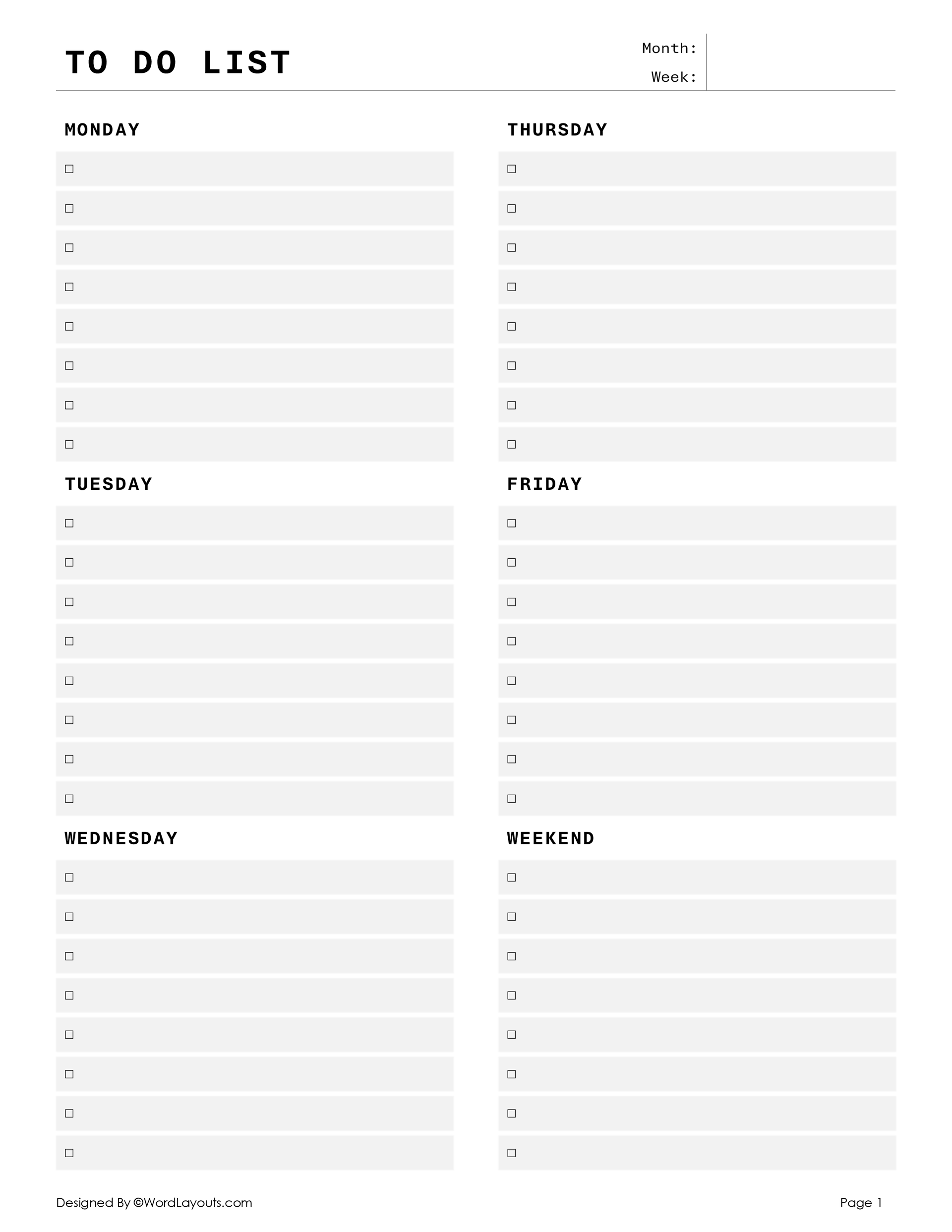 Free To Do List Templates Edit Printable