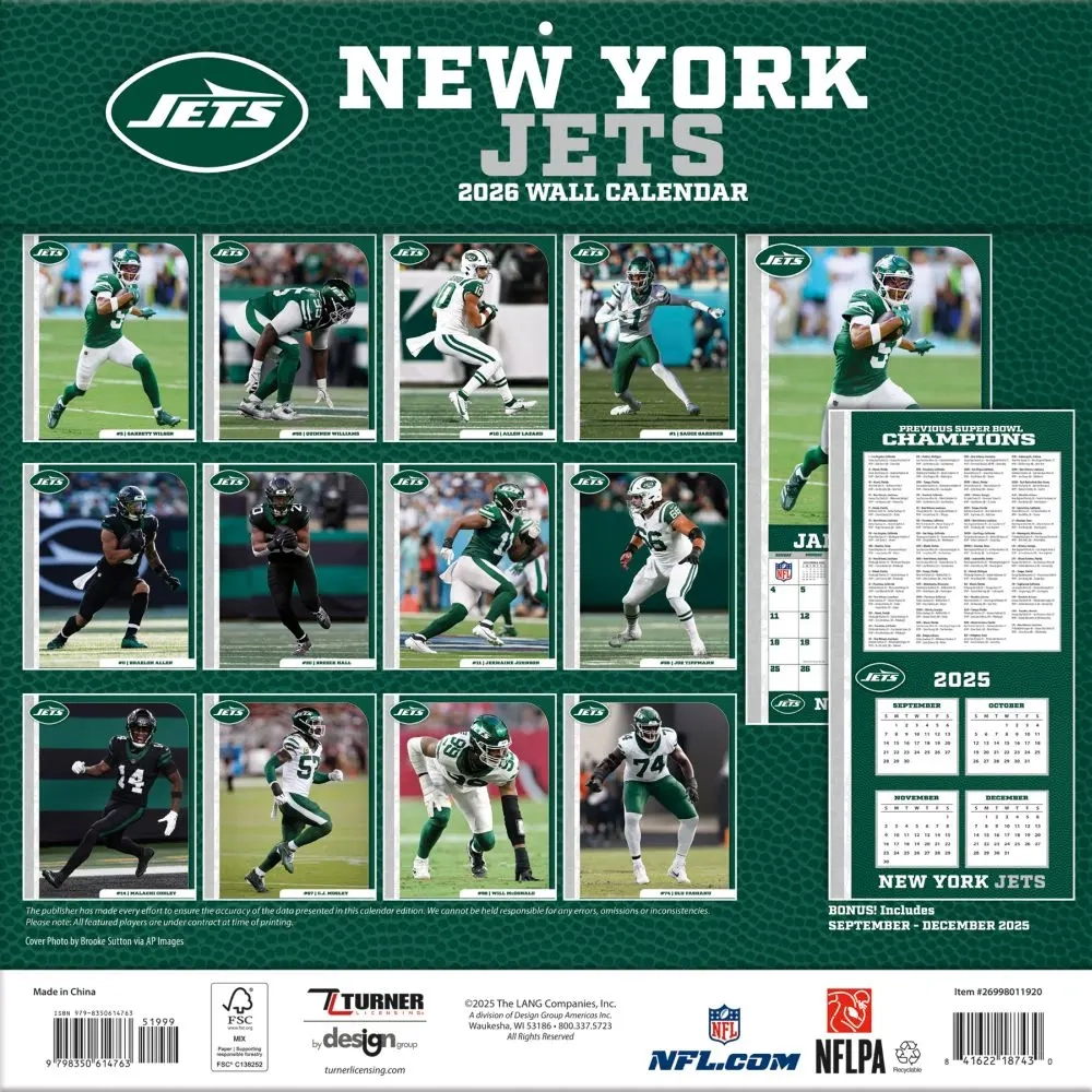 NFL New York Jets 2026 Wall Calendar Calendars