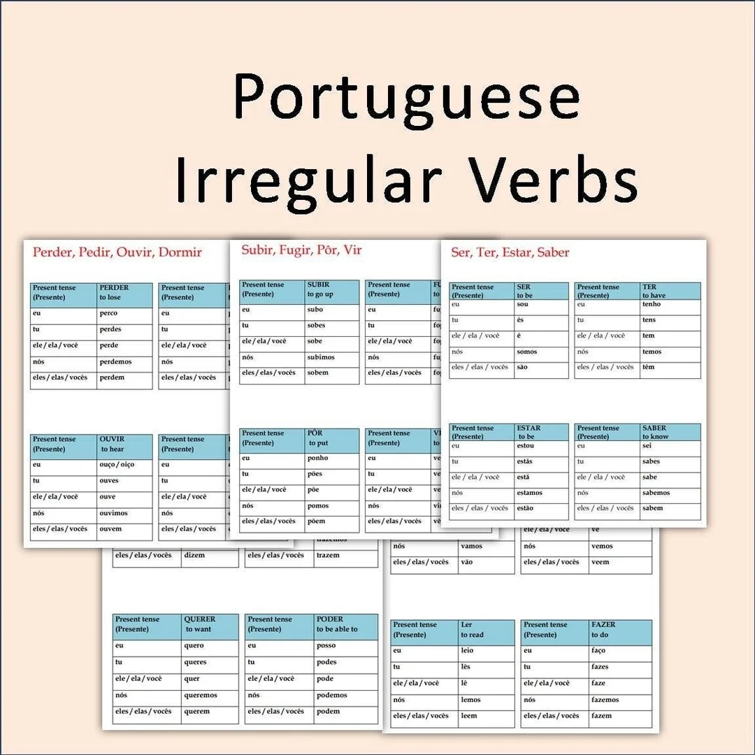 Portuguese Irregular Verbs Conjugation Chart Present Tense digital Download Etsy