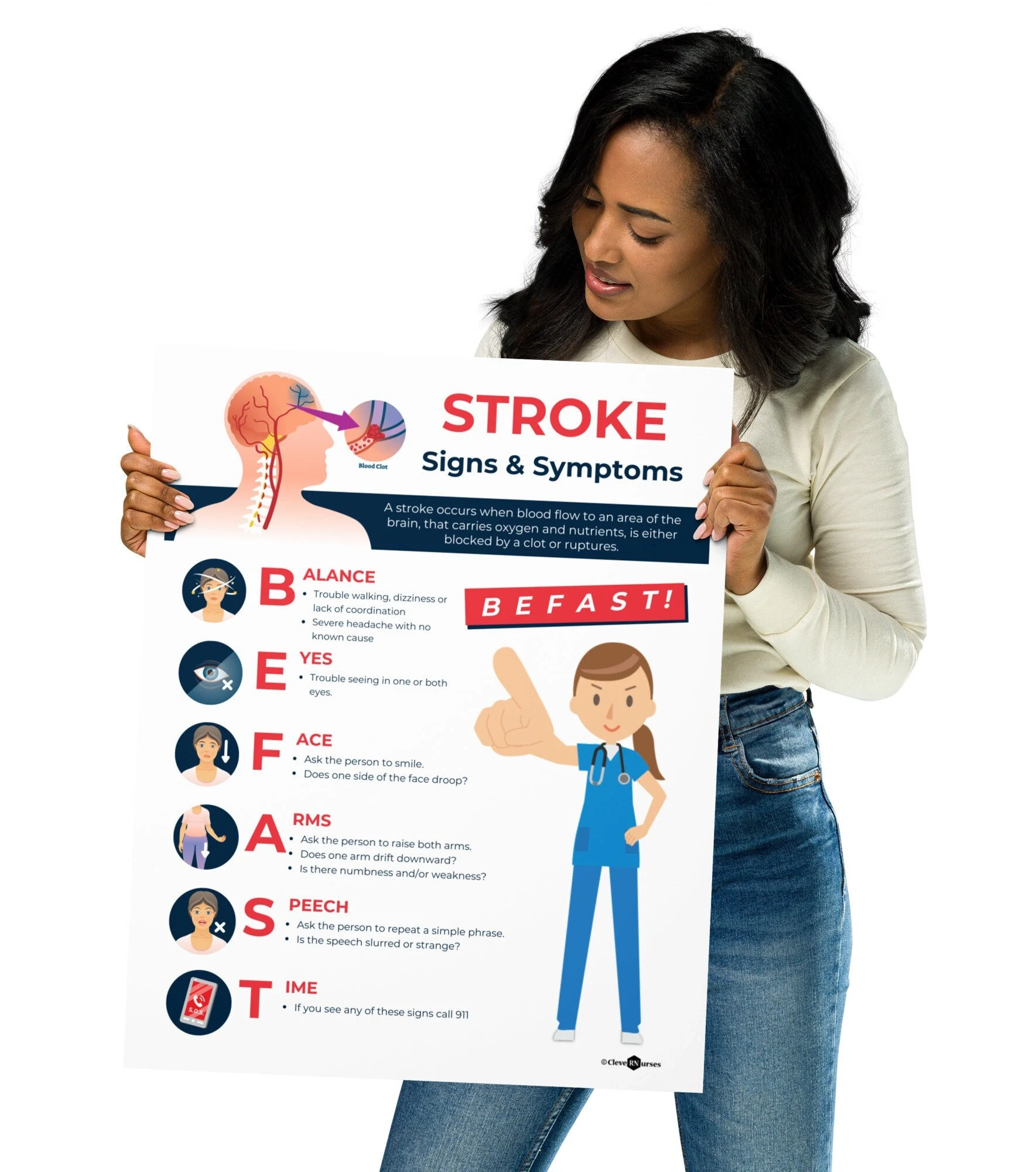 Amazon ZOCO BE FAST Stroke Warning Signs Poster Laminated 12×18 First Aid Safety Sign For Workplace School Clinic Stroke Symptoms Chart Made In USA Industrial Scientific