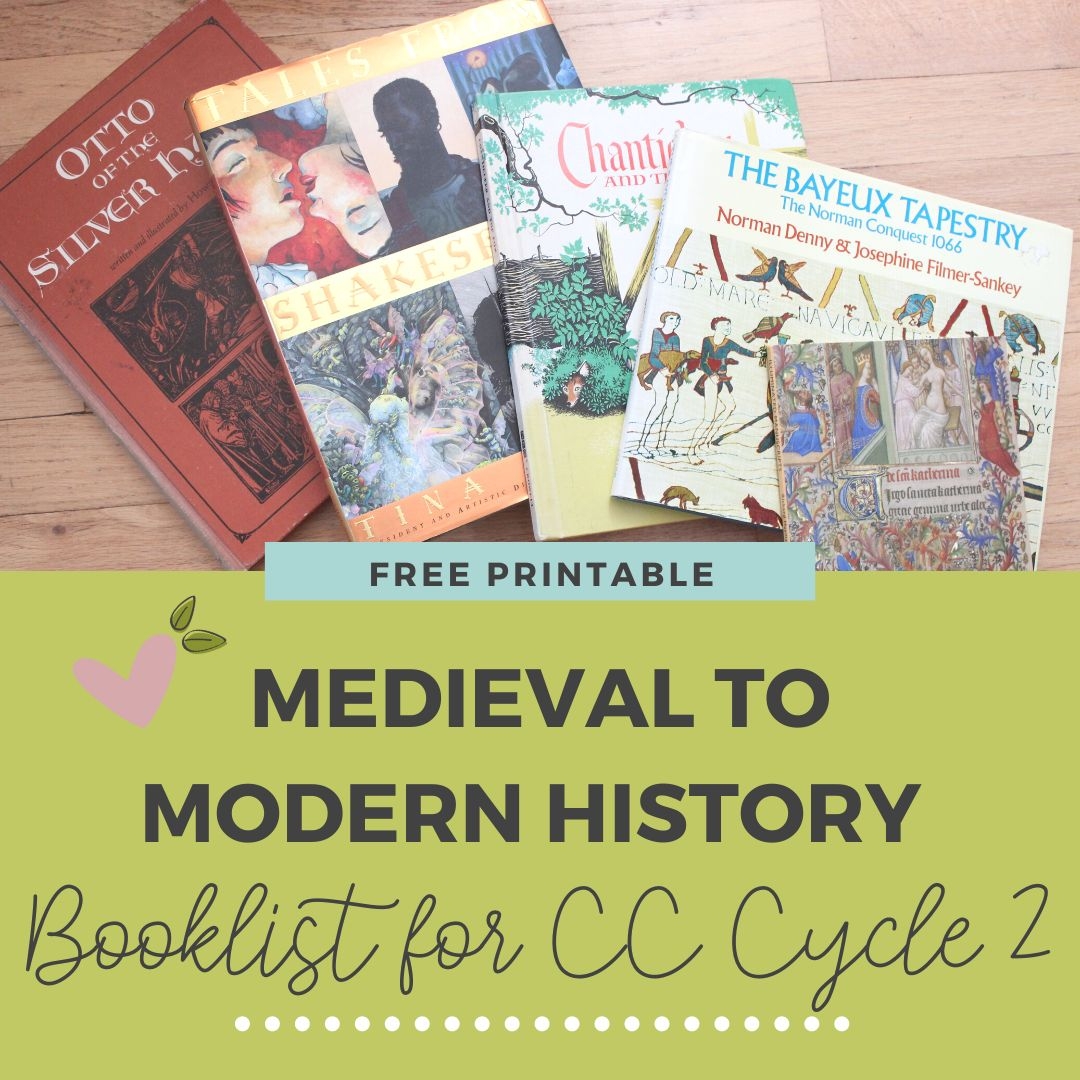 Medieval To Modern Book List Printable aligns With CC Cycle 2 Happy Strong Home