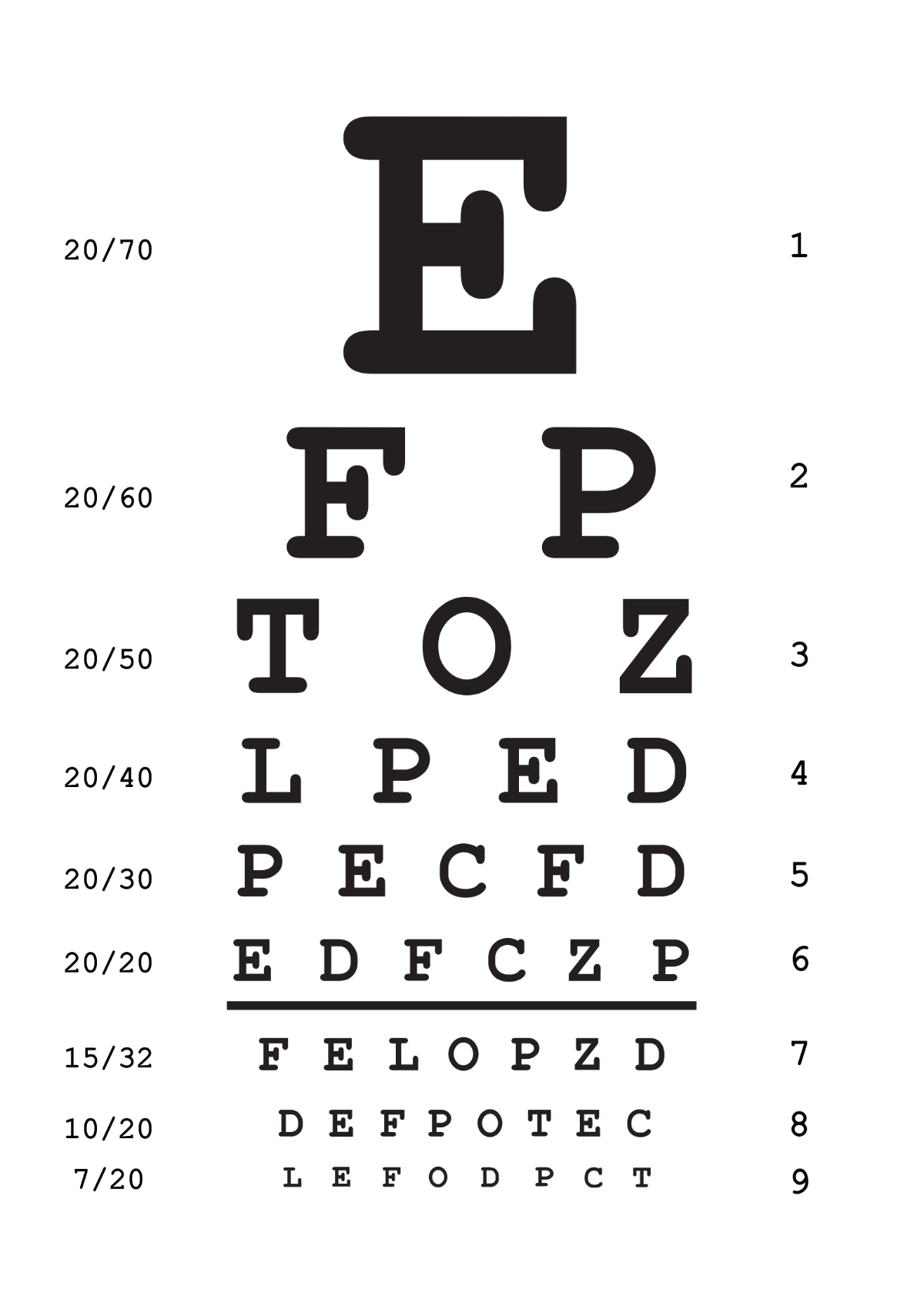 Our printable Dr. Eye Chart is designed to help you assess your visual acuity quickly and easily. With clear and concise letters and numbers in varying sizes, you can determine how well you can see at different distances.